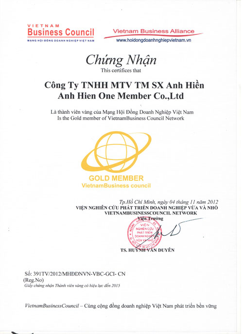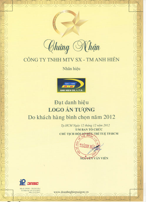 On 25.04.2012, the Standards and Consumer Protection Vietnam (VINASTAS), Consumer Magazine (The Consumer), the Council preferred brand (south) has officially granted certificates ANH HIEN TRADING PRODUCTION COMPANY LIMITED is currently board members preferred brand (south). This event is a brilliant successes marked achievements over 10 years of operation in Vietnam’s stainless steel sector company by Pham Luong Hien, director.